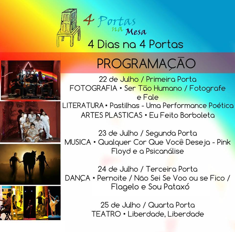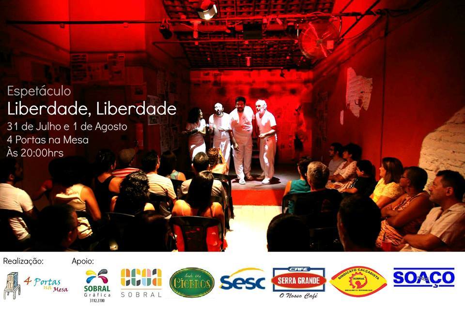 A 4 Portas na Mesa surgiu da reunião de um grupo de amigos no Rio de Janeiro (professores, atores e fotógrafos). Desde 2004, Chico Expedito participa ativamente no movimento teatral em Sobral, ocasião em que montou com elenco sobralense o espetáculo "Esperando Godot" que reinaugurou o Teatro São João. De lá pra cá, sempre esteve em Sobral ministrando cursos, oficinas, etc. Com todo potencial artístico existente em Sobral, porque não realizar um sonho antigo? O de montar a sua própria casa de produção, e a partir dela criar a sua Escola Livre de Teatro, realização quase impossível no Rio de Janeiro.Em 2014 se transfere para Sobral e nesse mesmo ano a casa começa a funcionar. Sua inauguração oficial foi em julho de 2015 com o evento 4 Dias na 4 Portas que envolvia todas as correntes artísticas existentes na cidade: Música, Artes Plásticas, Dança e Teatro. A 4 Portas na Mesa sempre teve a preocupação de fortalecer e dignificar os artistas locais e vai continuar assim.