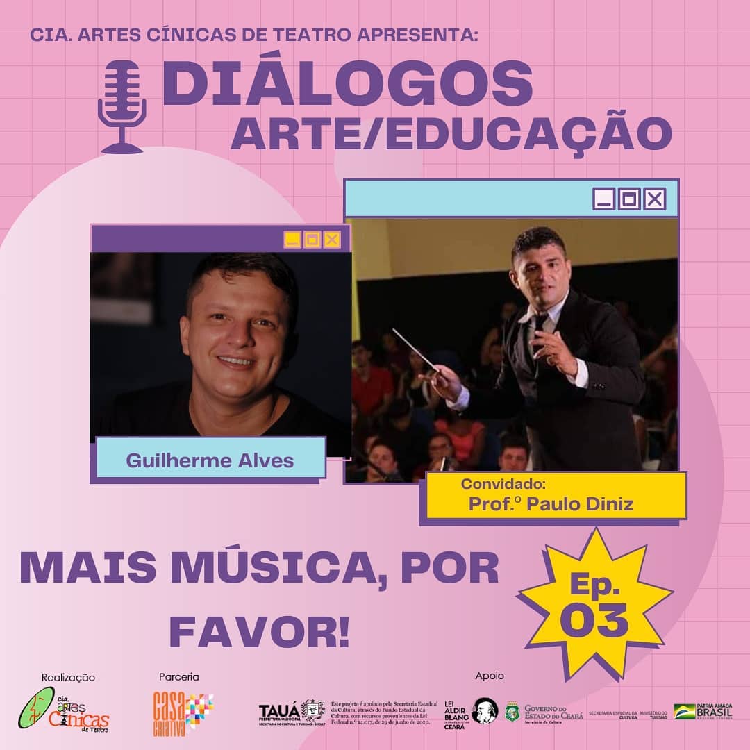 Ator, escritor, produtor cultural, arte-educador e pedagogo de formação acadêmica, Guilherme Alves iniciou sua carreira artística a doze anos no grupo tauaense Artes Cínicas, dirigido por Gilmar Costa, um dos principais nomes do teatro no sertão dos Inhamuns. Em 2017 passou a integrar também o grupo Juká de Teatro do diretor Robson Cavalcante, uma das mais importantes companhias teatrais do interior do estado. Como ator traz em seu currículo espetáculos como as Megeras, Papoulas, a Farsa do Cuviteiro, a Farsa do Panelada, entre outros. Como produtor faz parte, já a quatro edições, da equipe do Festival dos Inhamuns de Circo, Bonecos e Artes de rua, além de atuar como mobilizador cultural junto a escolas do município de Tauá e região.Vídeos