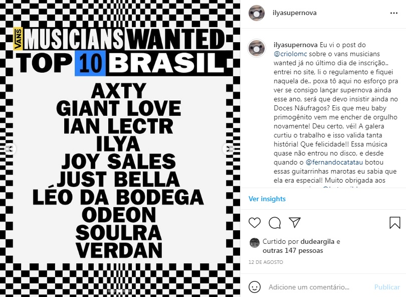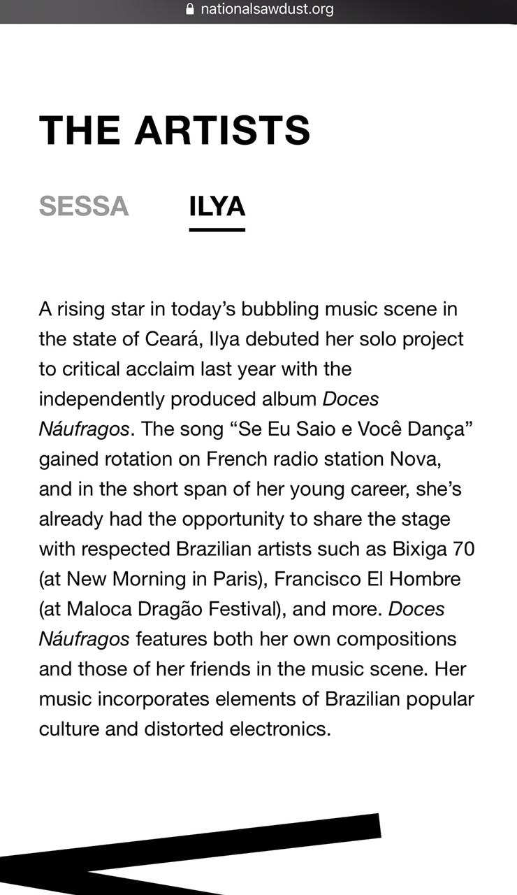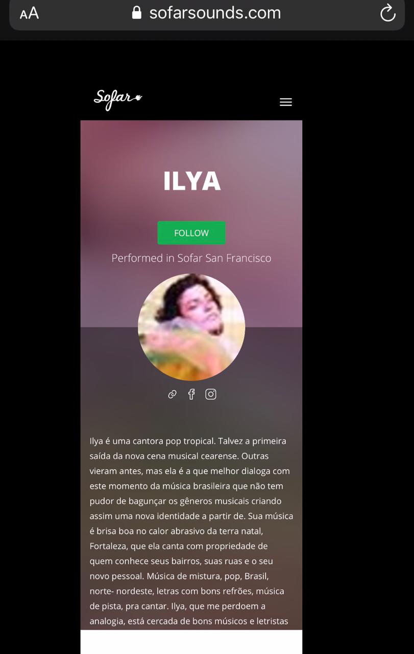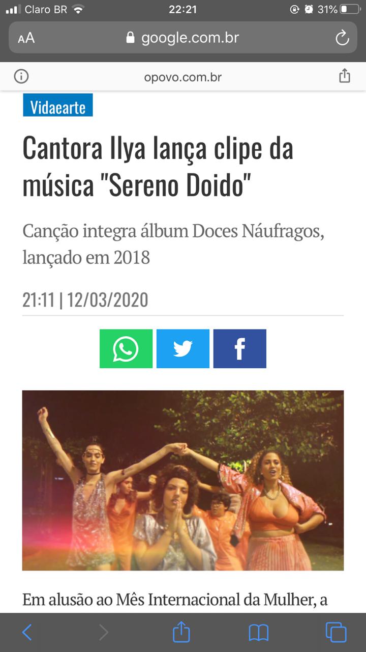 Ilya vem consolidando sua trajetória artística sobretudo na música com uma participação relevante na cena nacional. Seu álbum debut Doces Náufragos, lançado em 2018 , foi premiado na feira SIM SÃO PAULO com a canção Canções de Mar na lista de melhor música POP, no mesmo ano. O show alcançou palcos e centros culturais Brasil afora como o Brazil Summerfest em Nova York e New Morning Paris para a feira de música MaMa. Além de após três anos de seu lançamento ter sido premiado nos concursos QualiCult e Vans Musicians Wanted, no ano de 2021.Vídeos