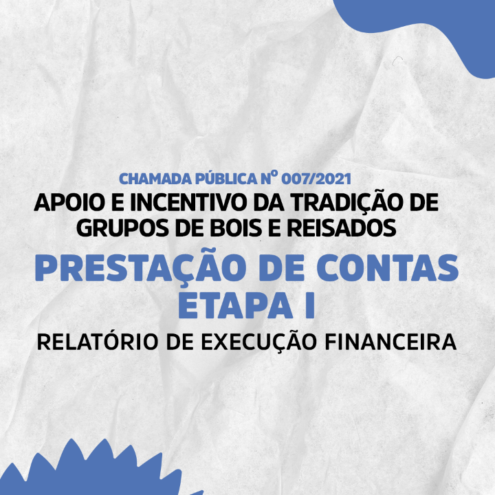 Esta oportunidade foi criada para a Prestação de Contas (Fase 01 - Relatório de Execução Financeira) da CHAMADA PÚBLICA PARA APOIO E INCENTIVO DA TRADIÇÃO DE GRUPOS DE BOIS E REISADOS DE SOBRAL, cujo objetivo é apoiar grupos que irão se apresentar durante as atividades do ciclo festivo de Bois e Reisados no ano de 2022, em conformidade com o artigo 2º da Lei Municipal n°1.244/2013.