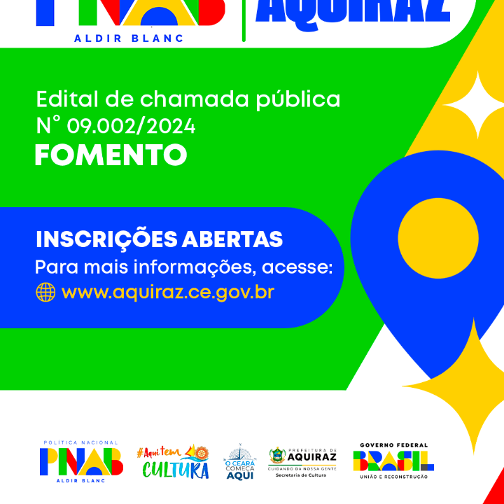 EDITAL DE CHAMAMENTO PÚBLICO Nº 09.002/2024 - SELEÇÃO DE PROJETOS PARA FIRMAR TERMO DE EXECUÇÃO CULTURAL COM RECURSOS DA POLÍTICA NACIONAL ALDIR BLANC DE FOMENTO À CULTURA – PNAB (LEI Nº 14.399/2022) - AQUIRAZ/CE